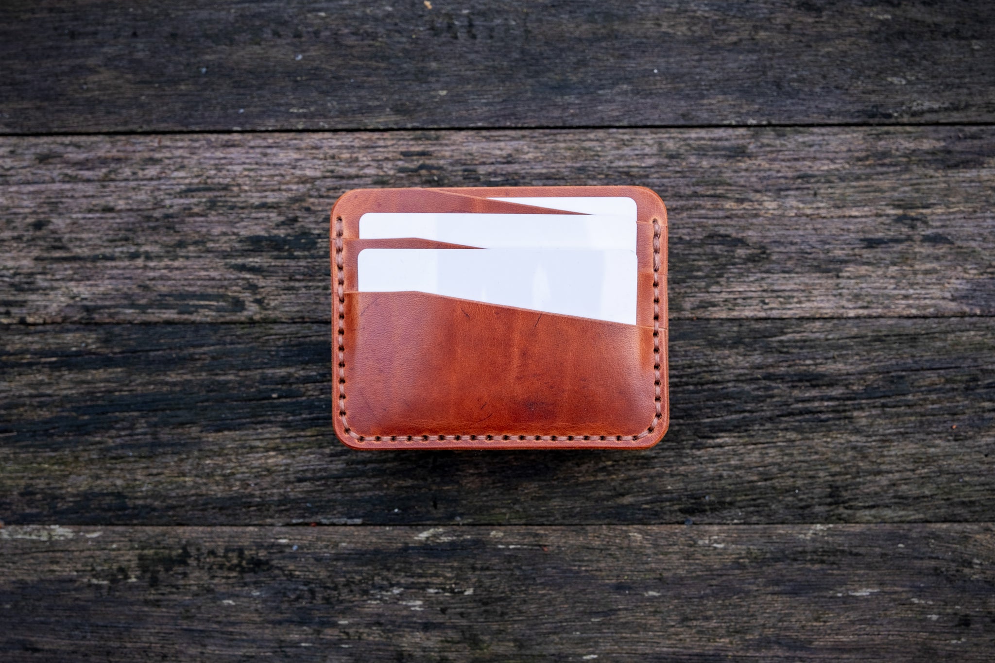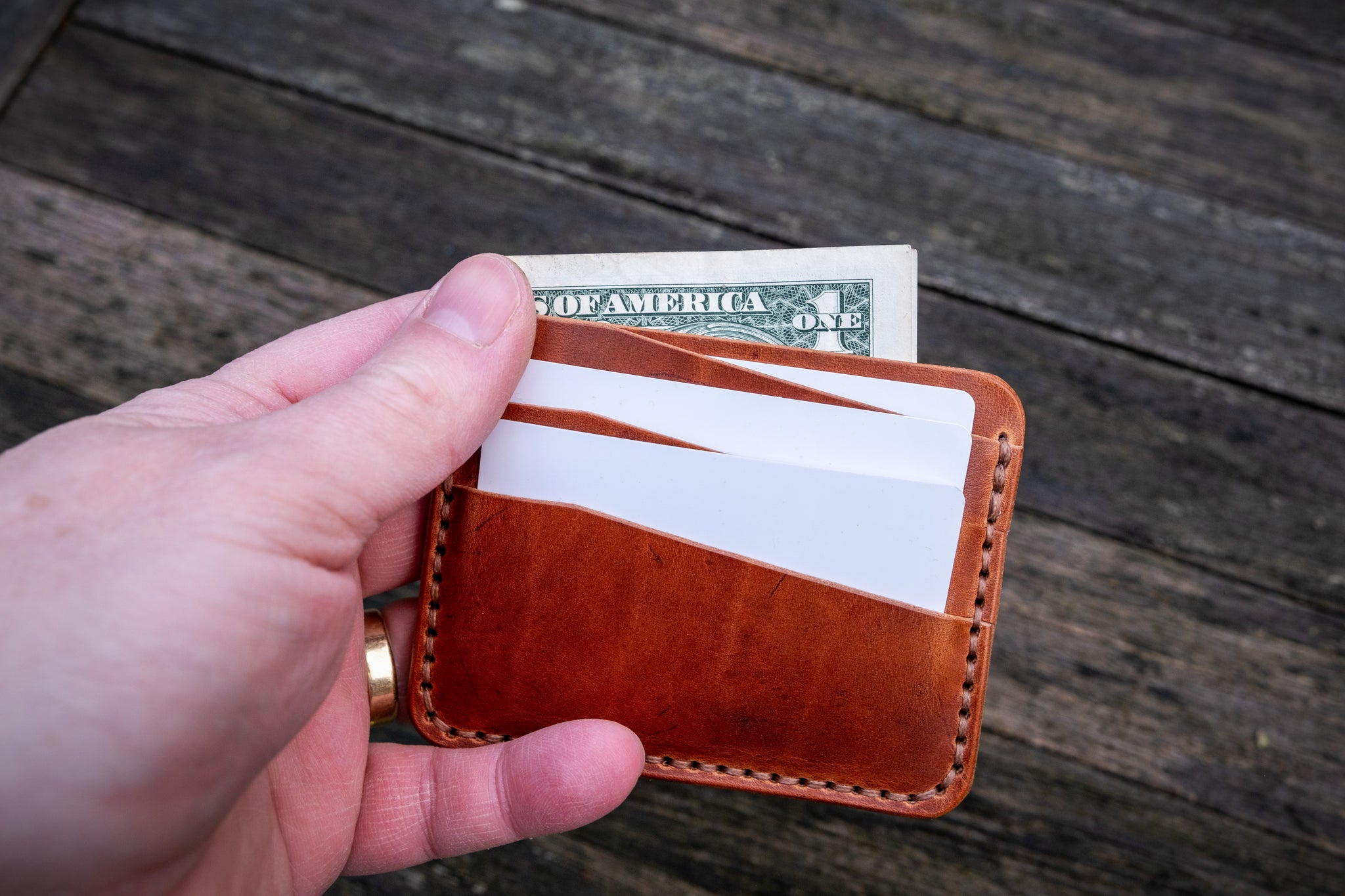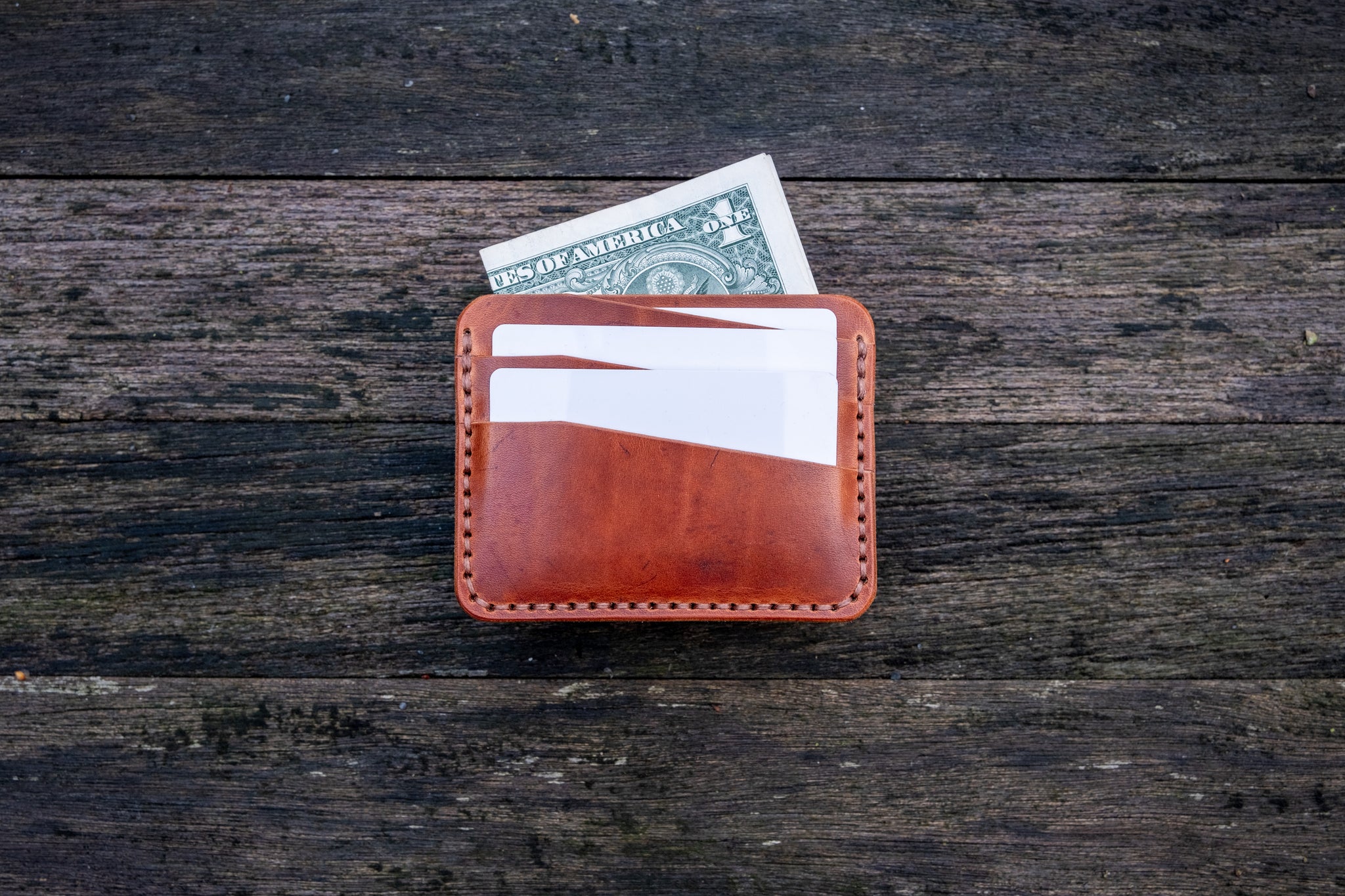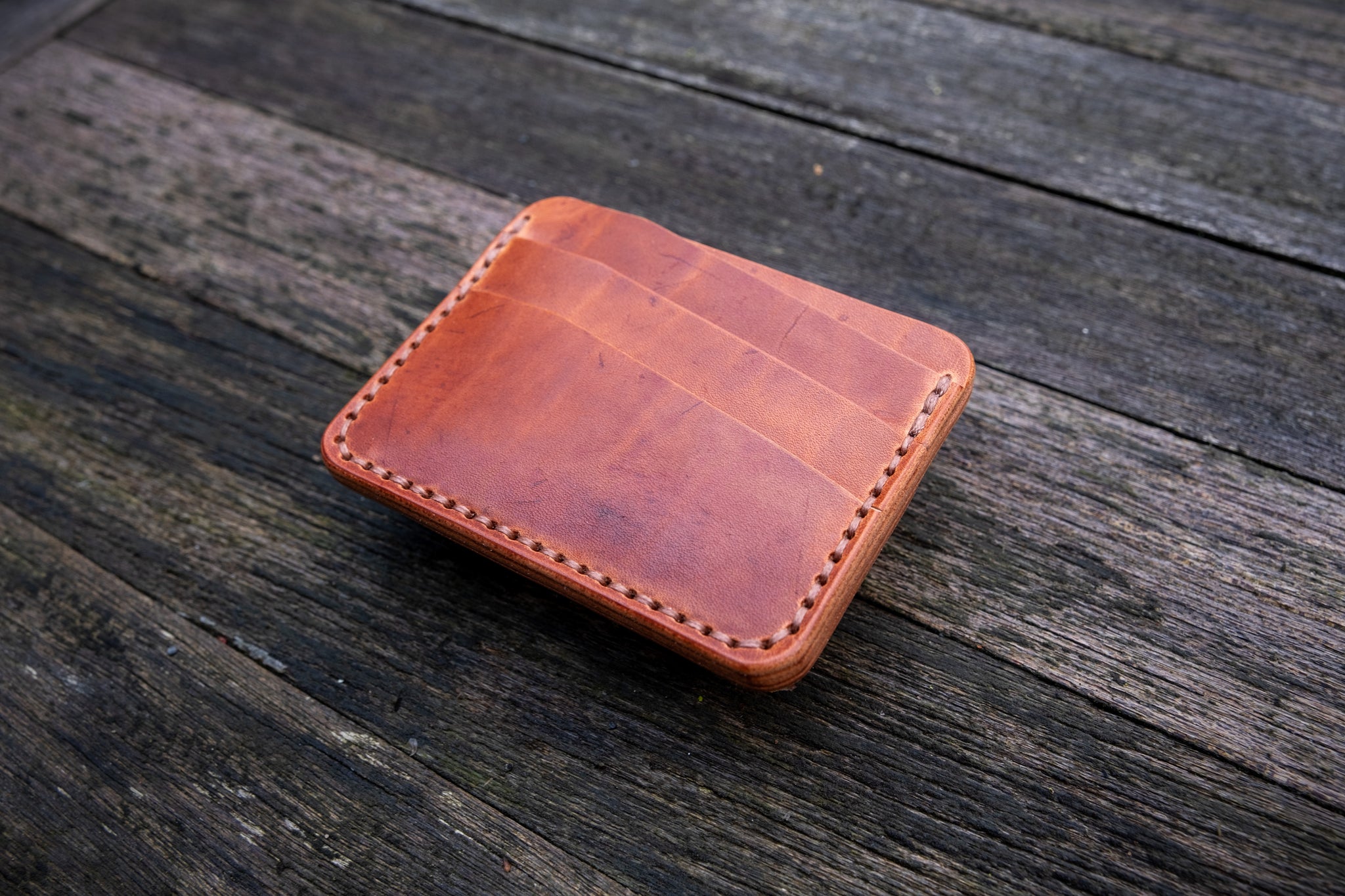 Please note, Horween Dublin leather is a natural product and is therefore susceptible to natural markings such as scars and other minor blemishes that may not be present in the product photos. In addition the Horween Dublin leather used in these wallets is noticeably thicker than your average wallet leather and therefore results in a more substantial and robust wallet that will last a lifetime. Any cards or money shown in the photos are for illustration purposes and are not included with the product.