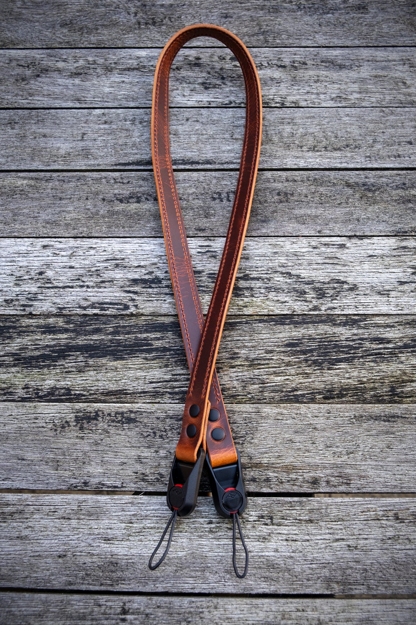The Savanna leather camera strap is handmade from the finest full grain vegetable tanned  leather sourced from the legendary Badalassi Carlo tannery in Italy. The tanning process is centuries old giving a distressed and rugged look and offers a beautiful 'pull-up' effect where temporary shifts in colour occur when the leather is flexed. There is also loads of surface character that brings out the natural grain. Simply gorgeous leather and perfect for patina lovers!